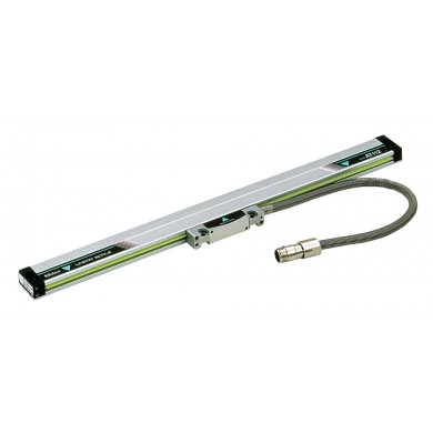 A spar-type linear scale that uses Mitutoyo’s ABSOLUTE electromagnetic induction system to achieve the extreme environmental resistance rating of IP67. The absolute position of the read head is always detected at power-up with no zero- or reference-point setting required. An armoured signal cable connects the read head to a display unit.